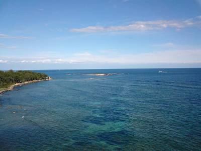 photo : vue de la mer depuis l'ile St Honorat (Iles de Lérins, en face de Cannes)