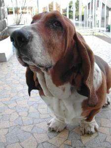 Voici mon fidèle Hubert, basset hound de 6 ans, compagnon de jeux d'Arthur.